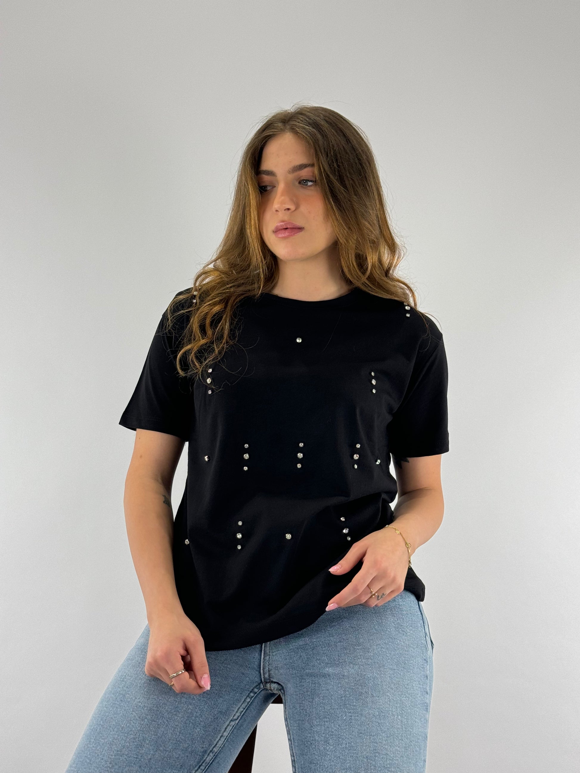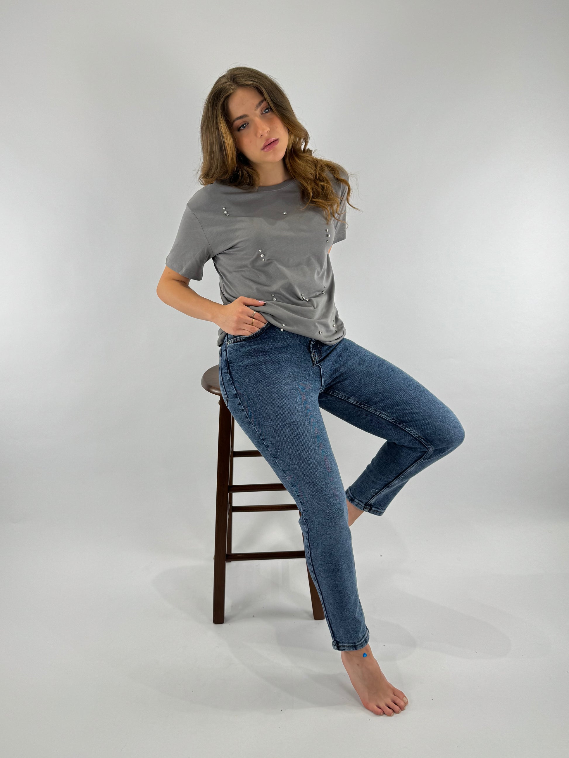 A classic tee with a twist — this soft cotton shirt features scattered bead accents for a modern, edgy vibe. Available in gray and black, it’s an easy upgrade to your casual wardrobe.