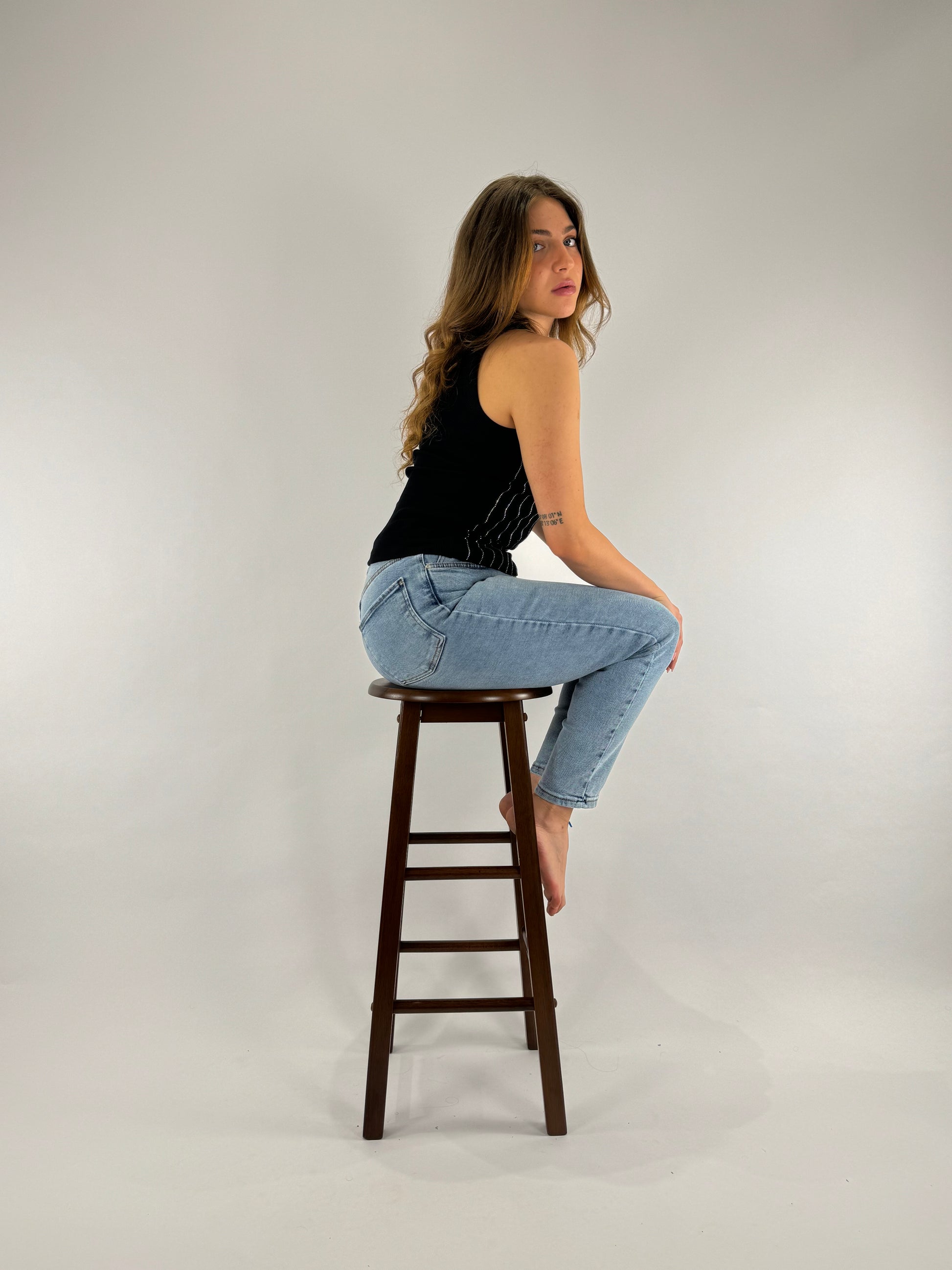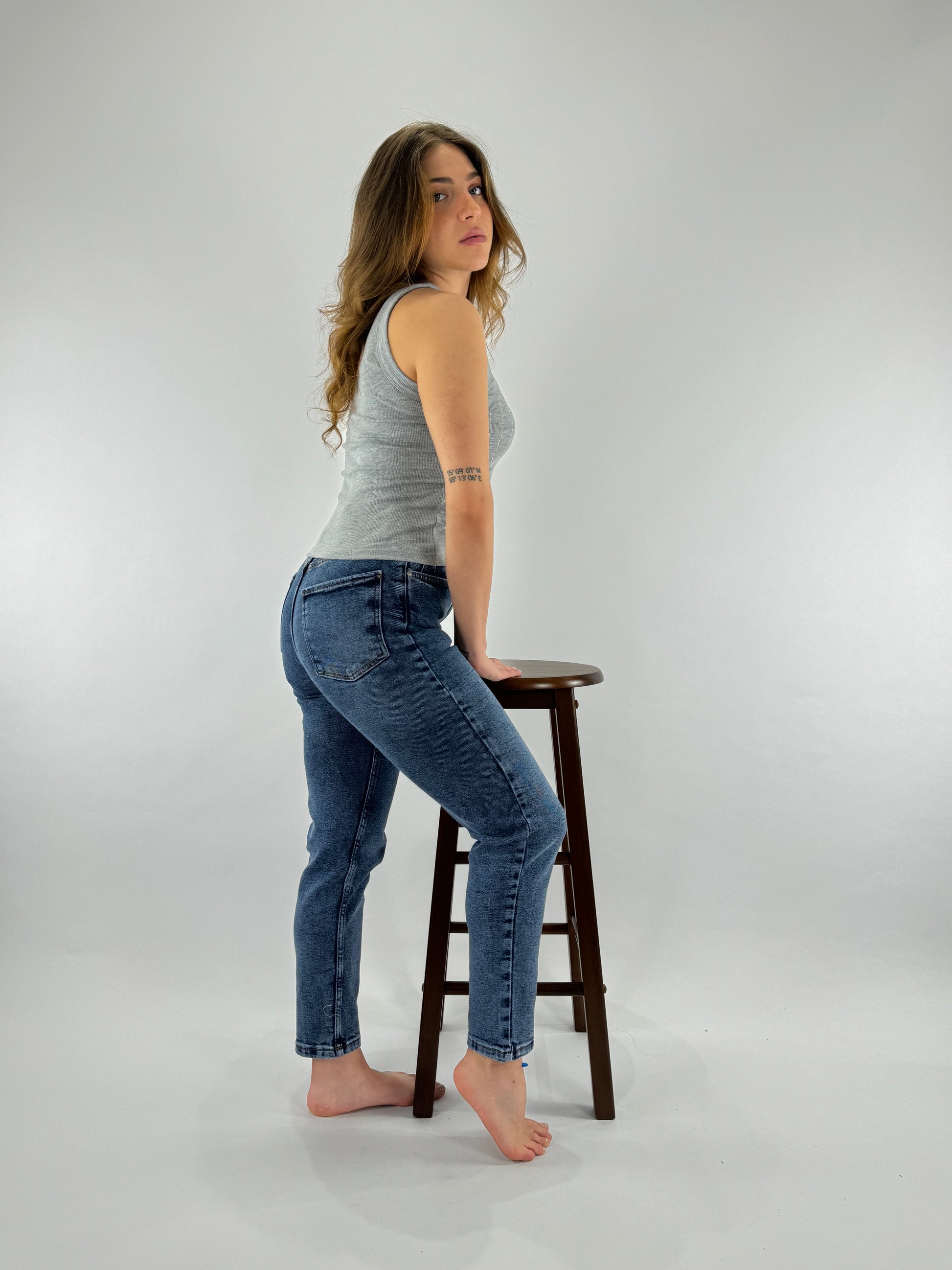 These high-waisted mom jeans blend timeless design with modern comfort. Featuring a relaxed fit through the hips and a tapered leg, they deliver a flattering vintage-inspired silhouette. Available in two versatile shades.