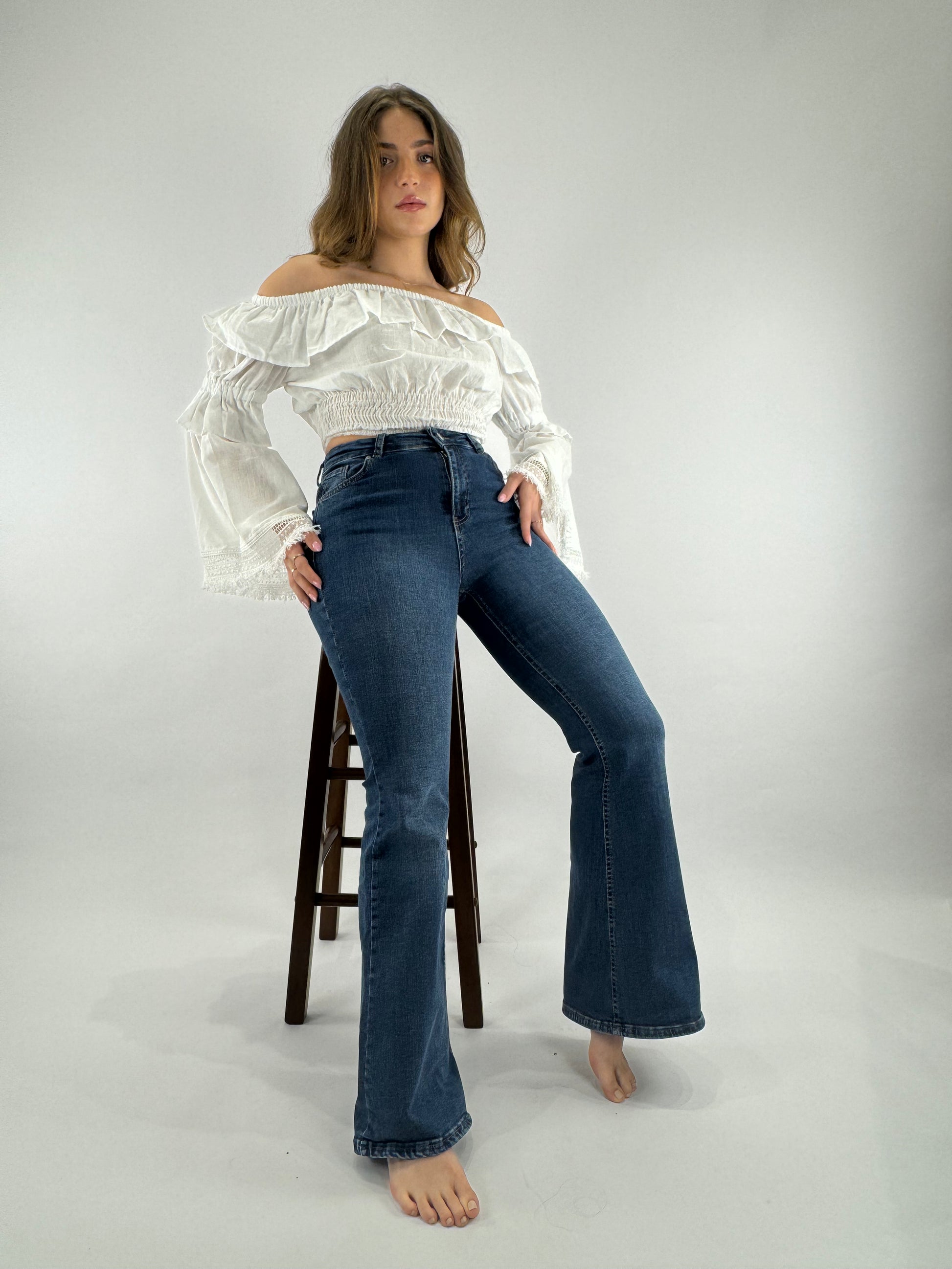 Elegant and effortlessly chic, this off-shoulder top highlights your neckline with a soft, flattering silhouette. A timeless piece for both casual days and dressed-up evenings.
